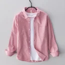 Pink Shirts For Men Casual Slim Fit 100% Cotton Oxford Long Sleeve Shirt Men’s Vintage Clothes
